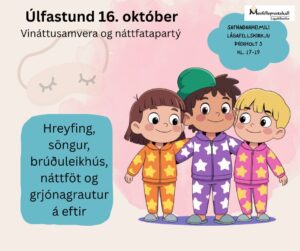 Í úlfastund á fimmtudaginn ætlum við að hafa náttfatapartý. Svo þá má gjarnan mæta í náttfötunum. Söngur, brúðuleikhús, samvera og grjónagrautur á eftir. Skráning á lagafellskirkja.is og hér: