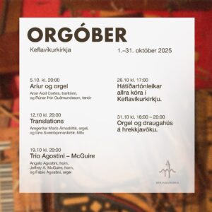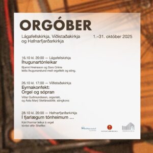 Orgóber – Orgelhátíð í október í kirkjum Kjalarnessprófastsdæmis. Aðgangur ókeypis – verum öll hjartanlega velkomin.