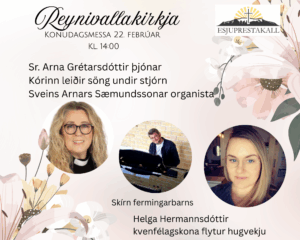 Sr. Arna Grétarsdóttir þjónar, kórinn syngur undir stjórn Sveins Arnars Sæmundssonar organista og sérstakur gestur verður Helga Hermannsdóttir kvenfélagskona sem flytur hugvekju.